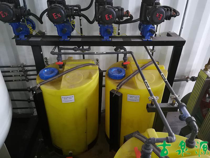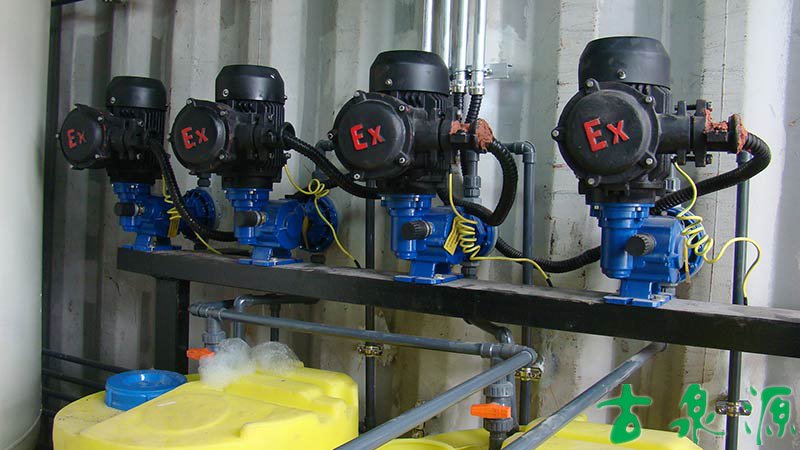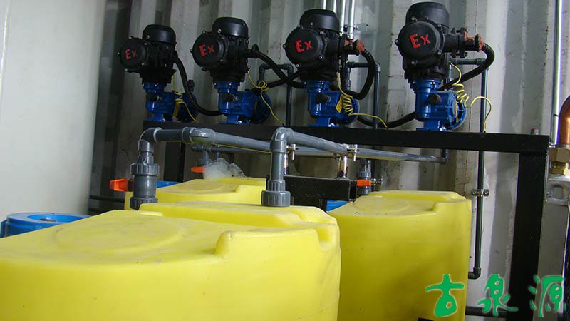 加藥系統(tǒng)(dosing system)主要由溶液箱、攪拌箱(帶攪拌器)、計量泵、液位計、電控柜、管路、閥門、安全閥、止回閥、壓力表、過濾器、底座、扶梯等組成(可根據(jù)用戶實際要求配置)。加藥系統(tǒng)根據(jù)所需藥劑濃度,在攪拌箱內(nèi)配制,經(jīng)攪拌器攪拌均勻后投入溶液箱、用計量泵(加藥泵)向投藥點或指定的系統(tǒng)中輸送所配制的溶液。